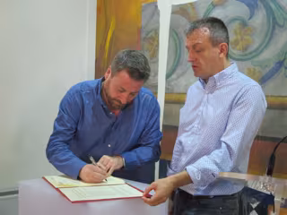 El consejero de Vertebración del Territorio, Movilidad y Vivienda del Gobierno de Aragón, José Luis Soro, y el consejero municipal de Economía y Cultura del Ayuntamiento de Zaragoza, Fernando Rivarés, han firmado este martes un convenio de colaboración en materia turística por el que ambas instituciones estrechan sus lazos para promocionar la tierra del pintor Francisco de Goya, compartir información de sus oficinas de turismo y realizar acciones de difusión en las Fiestas del Pilar.