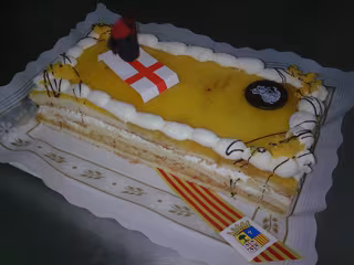 "El original se realiza con turrón de jijona, nata y almendra molida o crocanti y se decora con nata y huevo hilado, para luego colocarle el cachirulo, la medalla y la bandera de Aragón", ha recalcado Sorroche, para alertar de que "si lo que compran no lleva estos ingredientes, no es un 'Lanzón'".