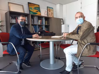 El director de Política Llingüística, Antón García, reunióse esti miércoles col xerente d'Área Norte Viaxeros de Renfe, Mariano Santiso, nel marcu de les conversaciones que la Conseyería de Cultura lleva a cabu pal usu de la toponimia oficializada nes infraestructures ferroviaries n'Asturies.