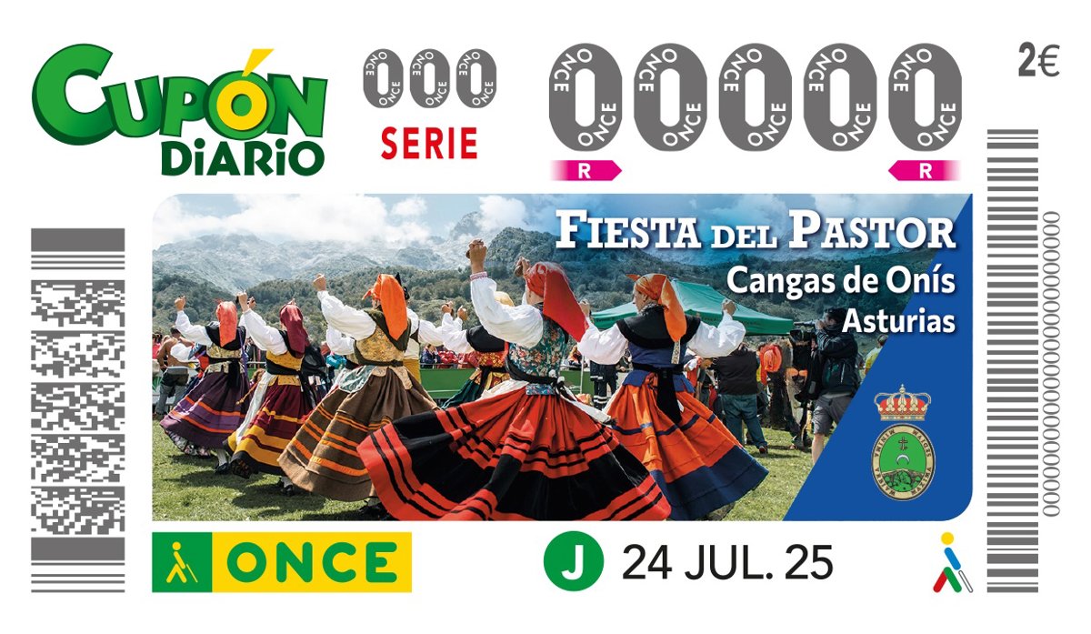 La ONCE va dedicar el cupón del sortéu d'esti xueves 24 de xunetu a la Fiesta del Pastor, una celebración tradicional del conceyu de Cangues d'Onís. En total, cinco millones de cupones van espublizar esta festividá, que celebrase cada añu nel Parque Nacional de los Picos d'Europa.