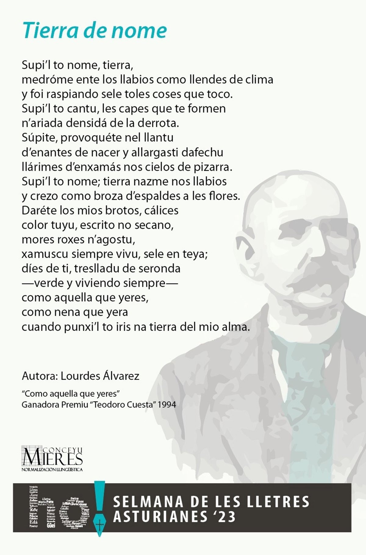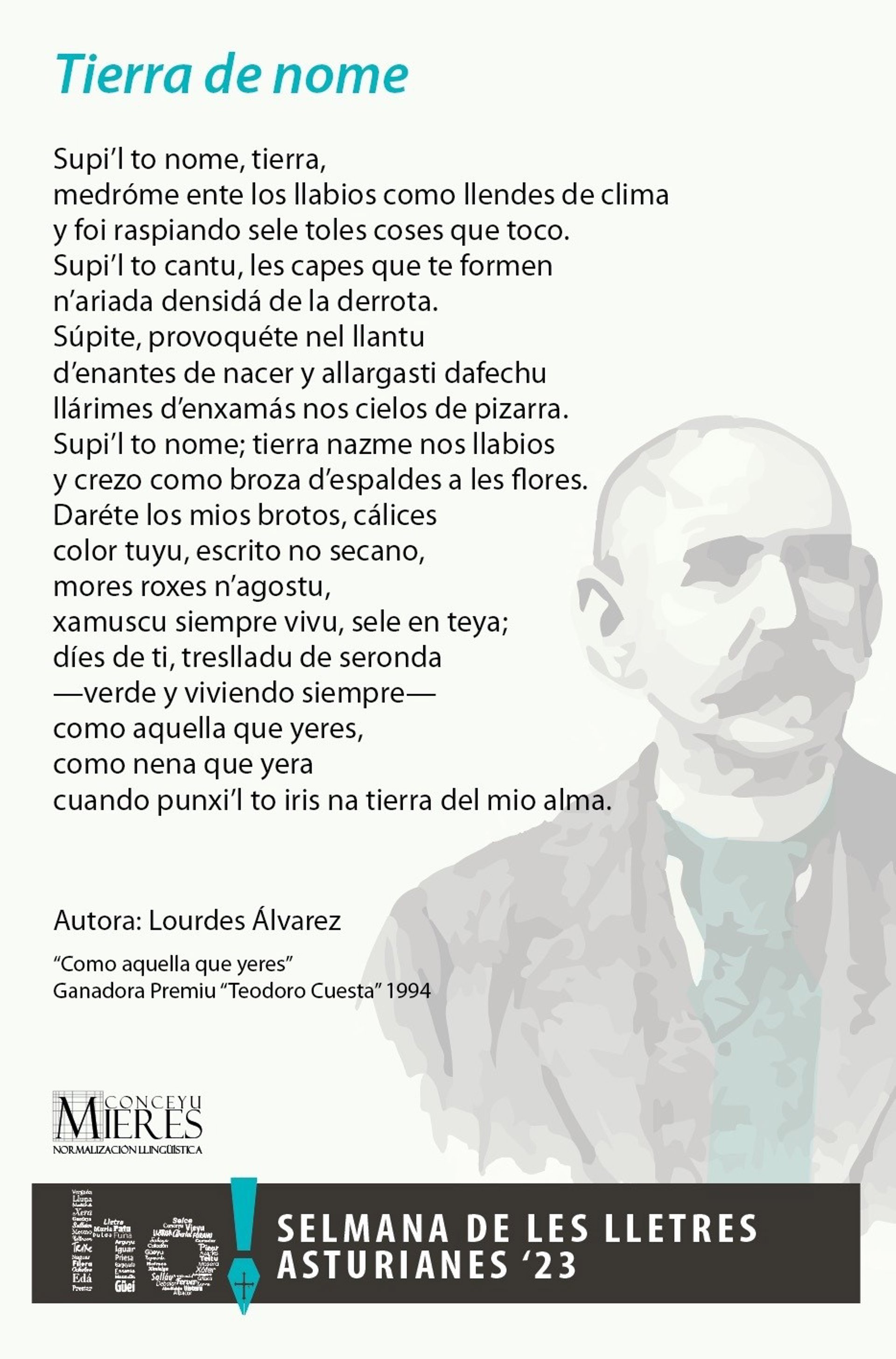 Con esta idea, el Conceyu saca les lletres y la poesía n'asturianu coincidiendo amás cola Selmana de les Lletres Asturianes. Una cita a la que'l Consistoriu sumóse entamando delles actividaes, ente les que destaca la entrega del Premiu Teodoro Cuesta de Poesía a Gonzalo González Barreñada, con un posterior alcuentru pa presentar el so poemariu 'Cartes al treslluz'.