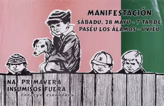 Precisamente, una de les sos xeres foi la d'arrexuntar cartelos escritos n'asturianu, o qu'anuncien actividaes de promoción de la cultura asturiana.