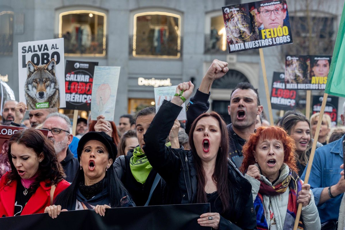 PACMA esixó con una concentración frente al Congresu de los Diputaos que se revoque de manera "inmediata" la esclusión de les poblaciones de llobos al norte del Douru del Llistáu d'Especies Monteses en Réxime de Protección Especial (LESPRE) al berru de "¡Llobu vivu, llobu protexíu!".