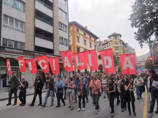 Sindicatos Suatea, CCOO, UXT y CSI, organizaciones polítiques como Compromisu, Conceyu Abiertu, Andecha Ástur, Izquierda Unida, y delles asociaciones sociales y culturales diéronse cita y aportaron les sos pancartes a la reivindación.