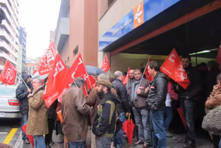 Entraron portando banderes de los sindicatos y tuvieron na sede del Serviciu Públicu d'Empléu mientres aprosimao media hora. Nun hubo nengún incidente.