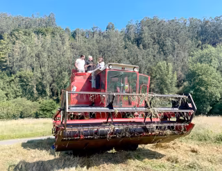 La directora general de Desarrollo Rural y Agroalimentación, Begoña López, visita una finca de Pravia en la que se está recolectando escanda - GOBIERNO DE ASTURIAS