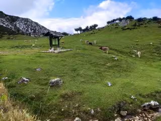 Vacas de la raza asturiana de los valles pastando en el entorno de los Lagos de Covadonga. - EUROPA PRESS - Archivo