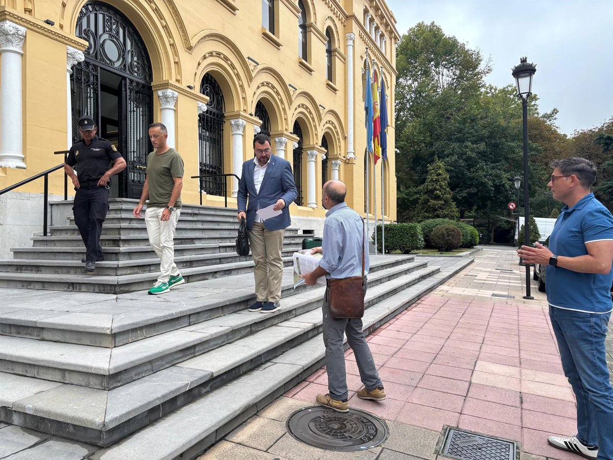 Archivo - Representantes de Asturias Ganadera conversan con el presidente del Principado, Adrián Barbón, frente a la sede de Presidencia, foto de archivo - EUROPA PRESS - Archivo