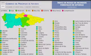 En el resto de los municipios del Principado el riesgo será 'moderado' o 'bajo', según las citadas previsiones.
