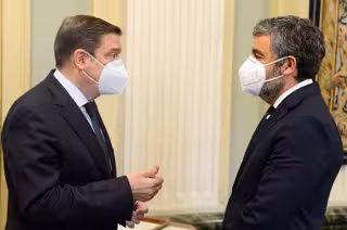 El consejero de Medio Rural y Cohesión Territorial, Alejandro Calvo, se ha reunido este jueves con el ministro de Agricultura, Pesca y Alimentación, Luis Planas, ante quien ha defendido el modelo de explotación familiar sostenible propio de las comunidades del norte de España.