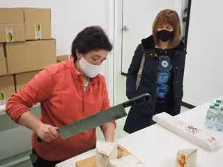 La consejera de Hacienda, Ana Cárcaba, y Rosa Sánchez, de la quesería Vega de Ario, en Benia de Onís - GOBIERNO DE ASTURIAS