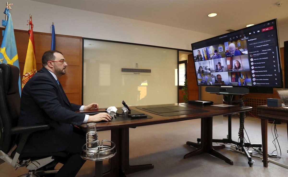 El presidente del Principado de Asturias, Adrián Barbón, preside la reunión telemática del Consejo de Gobierno. - ARMANDO ÁLVAREZ - GOBIERNO DE ASTURIAS