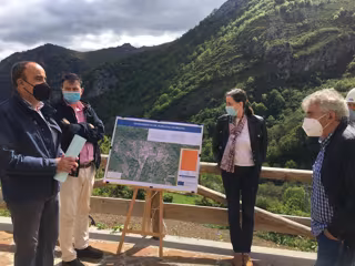 La viceconsejera de Medio Ambiente y Cambio Climático, Nieves Roqueñí, ha visitado este jueves los trabajos acompañada por el director general de Calidad Ambiental y Cambio Climático, Pablo Álvarez Cabrero, y el alcalde de Somiedo, Belarmino Fernández.