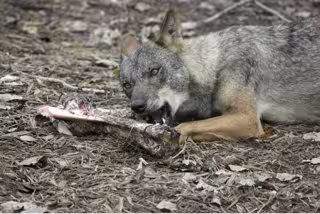 Archivo - Lobo comiendo carne, en imagen de recurso - UGR - Archivo