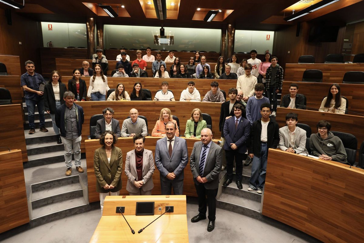 El Hemiciclo de la Junta General acogió este viernes la conferencia 'Senado y medio rural: retos y oportunidades', organizada por el Foro Comunicación y Escuela. Los senadores y senadoras asturianos José Manuel Fernández, José Manuel Rodríguez 'Lito', María Fernández y Melania Álvarez han mantenido un coloquio con 42 escolares de 1º de Bachillerato del IES Carmen y Severo Ochoa (Luarca); IES Galileo Galilei (Navia); CPEB Carlos Bousoño (Boal); IES Marqués de Casariego (Tapia) e IES Elisa y Luis Villamil (Vegadeo).