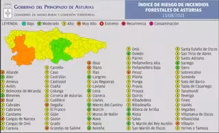 Un total de nueve municipios del suroccidente asturiano tendrán este viernes riesgo 'Muy alto' de sufrir incendios forestales en su territorio.