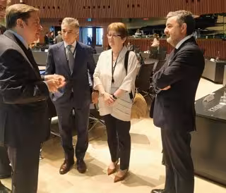 El ministro de Agricultura, Pesca y Alimentación, Luis Planas; el embajador permanente en Europa, Raúl Fuentes: la secretaria general de Pesca del Ministerio de Agricultura, Pesca y Alimentación, Alicia Villauriz, y el consejero Alejandro Calvo. - GOBIERNO DE ASTURIAS