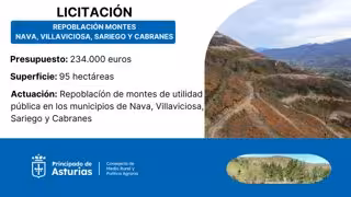 La Consejería de Medio Rural y Política Agraria ha sacado a licitación la repoblación de montes de utilidad pública en los concejos de Nava, Villaviciosa, Sariego y Cabranes por un importe de 234.000 euros.