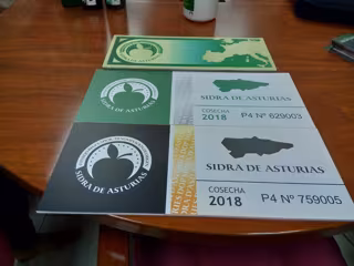 Los dos diseños de las nuevas contraetiquetas de la DOP Sidra de Asturias, debajo del antiguo - EUROPA PRESS - Archivo