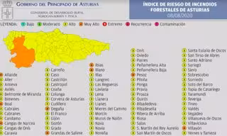 Así, el riesgo será 'muy alto' en Allande, Boal, Cangas del Narcea, Degaña, Grandas de Salime, Ibias, Illano, Pesoz y Villayón. En el resto de concejos asturiano el riesgo será 'alto'.