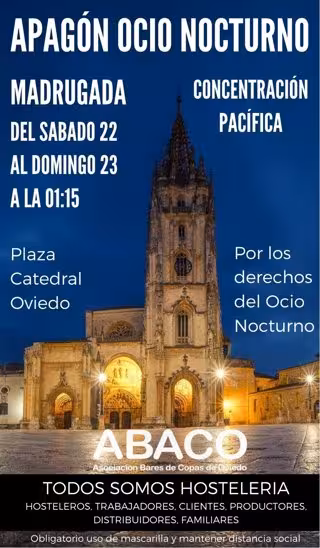 La Asociación de Bares de Copas de Oviedo (Abaco) ha organizado este sábado una concentración pacífica a las 1.15 horas de este domingo para reclamar el "derecho a trabajar" del ocio nocturno tras las últimas restricciones de Salud al sector.