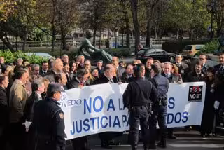 La movilización en Oviedo forma parte de una convocatoria a los juristas asturianos también frente a otros juzgados, como Oviedo, Avilés, Mieres, Pola de Siero y Sama de Langreo, portando la toga y exhibiendo unas pegatinas de protesta.