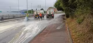 El derrame fue atajado y limpiado por personal y medios de la empresa adjudicataria del servicio de limpieza con la colaboración de una dotación del Cuerpo de Bomberos. Para facilitar su trabajo fue preciso cortar completamente la vía al tráfico rodado en el tramo citado.