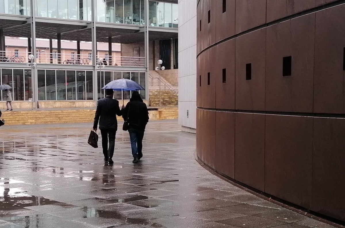El condenado abandona el juzgado totalmente cubierto y en compañía de su abogado. - EUROPA PRESS