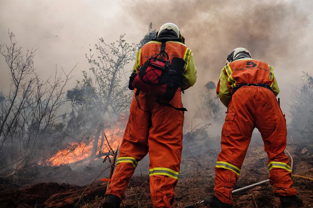 Bomberos de Asturias treabajan en el incendio de los concejos de Valdes y Tineo, a 30 de marzo de 2023, en Asturias (España). - Xuan Cueto - Europa Press
