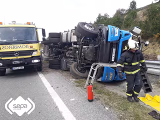 Un hombre de 50 años y un menor de 8 han resultado heridas tras volcar, en circunstancias que se desconocen, el camión en el que viajaban cuando circulaban por la A-8, antes de la salida de Jarrio, en dirección Santander, en Coaña.