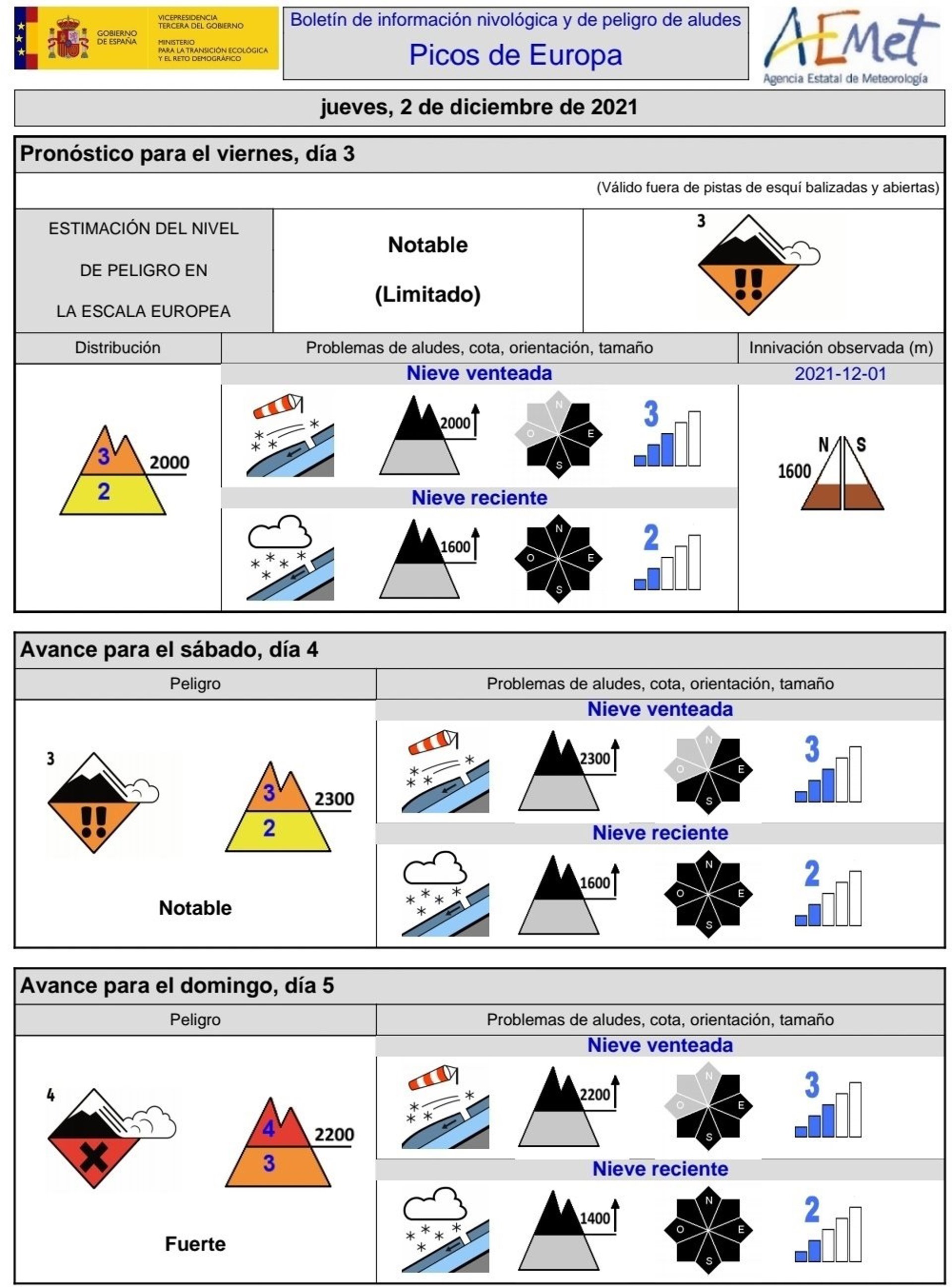 La Agencia Estatal de Meteorología (Aemet) ha emitido un aviso en el que se advierte, durante estos días, de riesgo notable y fuerte de aludes en Picos de Europa. El Servicio de Emergencias del Principado de Asturias (SEPA) ha señalado que es "especialmente peligroso" realizar recorridos a pie por la alta montaña, así como la práctica de deportes invernales, como el esquí de travesía o la escalada en hielo.