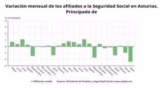 Variación mensual del número de afiliados a la Seguridad Social en Asturias. - EPDATA