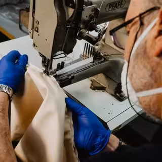 Un trabajador de la fábrica de Calzados Pitillos en Arnedo (La Rioja) fabrica material sanitario para combatir el coronavirus. - Calzados Pitillo