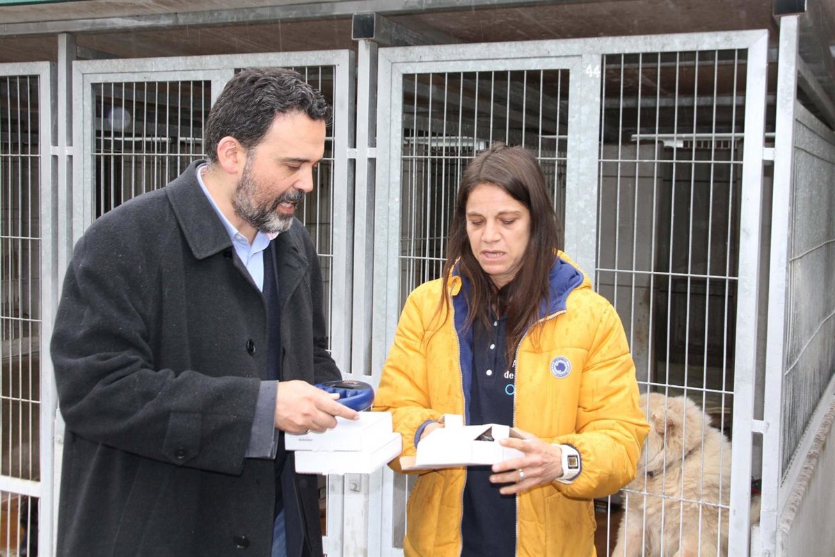 Los responsables de la empresa concesionaria que gestiona el Albergue de Animales de Oviedo hicieron entrega este viernes al concejal de Seguridad Ciudadana del Ayuntamiento, Ricardo Fernández, de tres lectores de chip para que las patrullas de la Policía Local dispongan de medios para identificar a los animales.