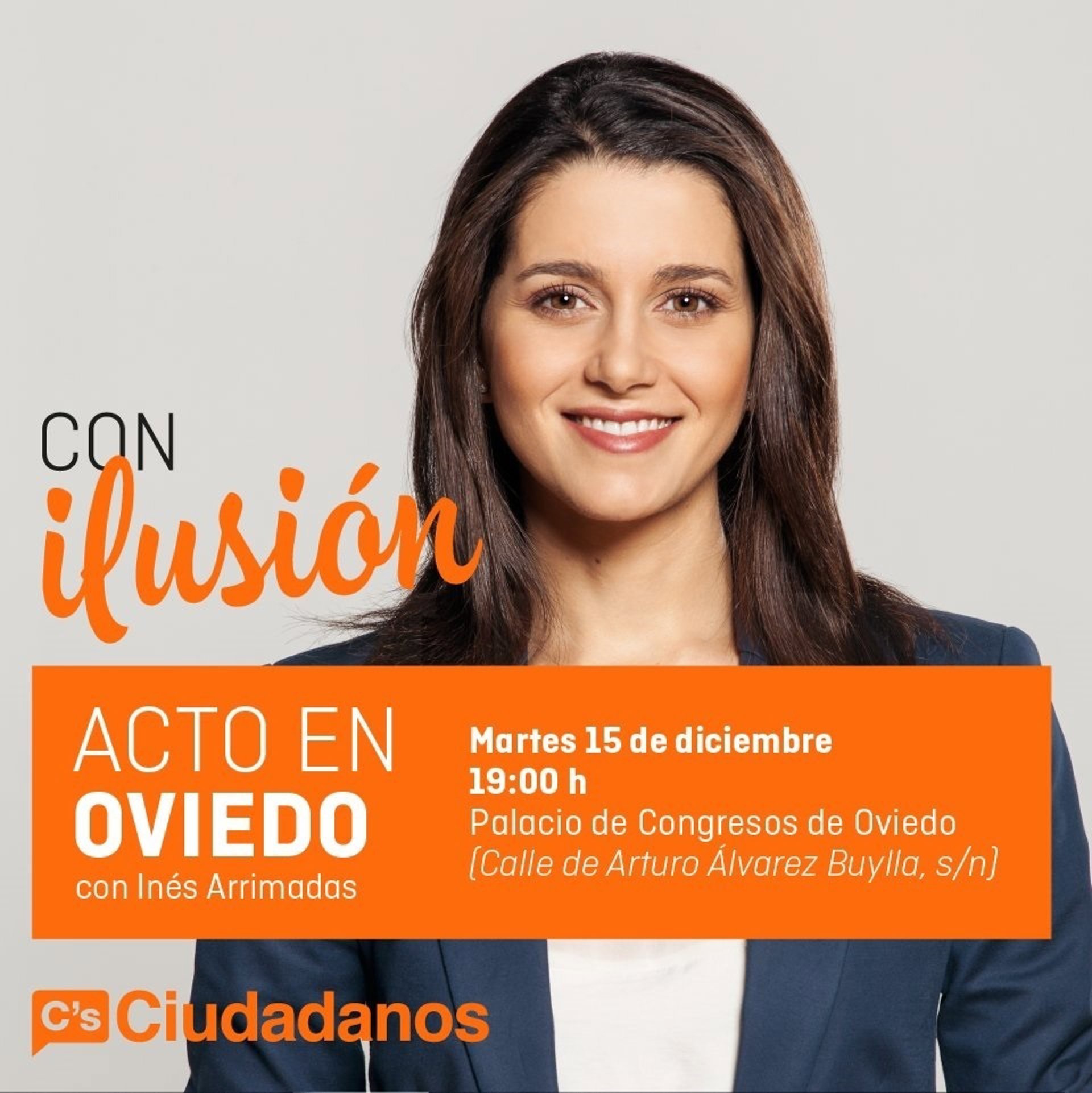 Ciudadanos ha hecho público el anuncio en su cuenta de Twitter, donde también han indicado que será Arrimadas la encargada de arropar al candidato asturiano al Congreso, Ignacio Prendes, en el acto previsto en el Palacio de Congresos de Oviedo a las 19.00 horas.