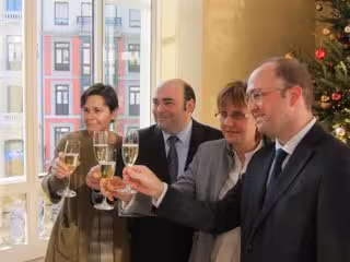 Los alcaldes de Oviedo, Iglesias Caunedo, de Gijón, Carmen Moriyón y de Avilés, Pilar Varela, han celebrado este viernes el ya conocido brindis que se lleva a cabo a finales de todos los años donde se sientan las bases y los deseos para el año que va a comenzar. Para 2013, los tres alcaldes han deseado que sea un año de "éxitos" y que sirva para "dejar a un lado el localismo y el enredo político".