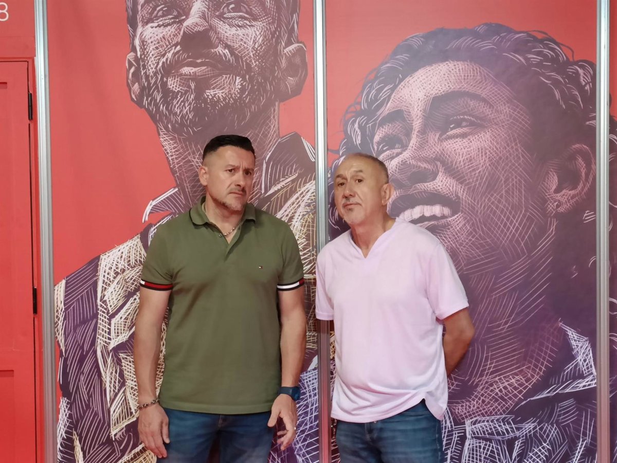 El secretario general de UGT, Pepe Álvarez, junto al secretario general de UGT de Asturias, Javier Fernández Lanero, en el stand de UGT en la 68 Feria Internacional de Muestras de Asturias (Fidma), en el recinto ferial gijonés 'Luis Adaro'. - EUROPA PRESS