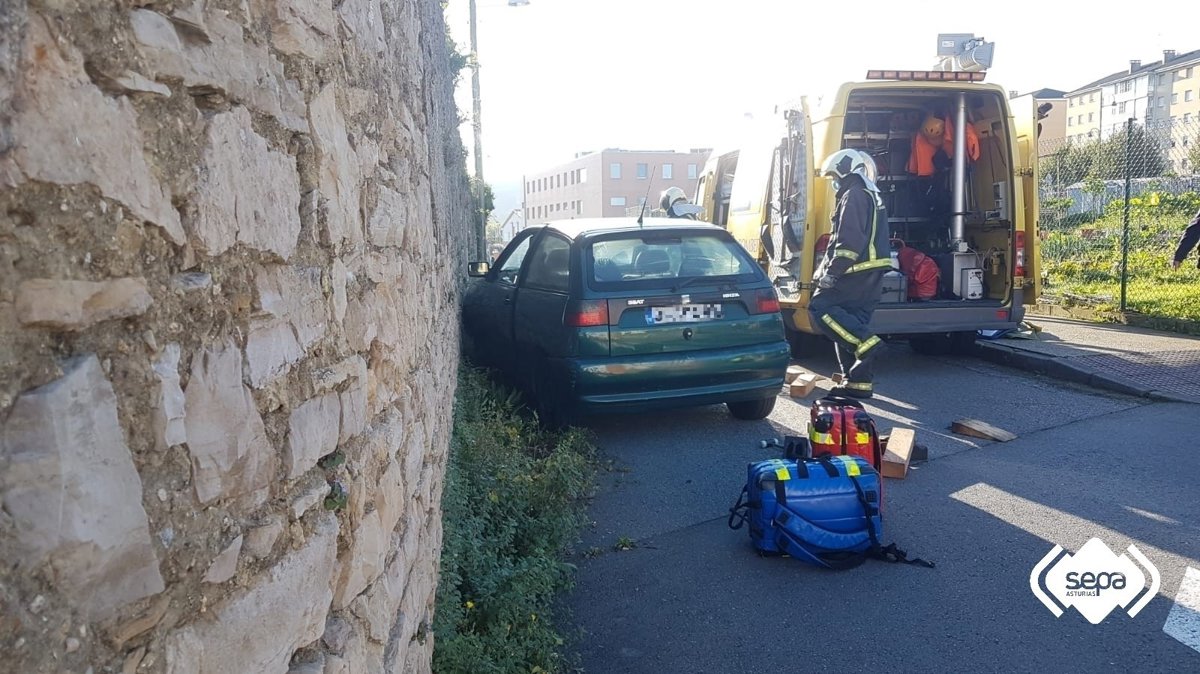La herida tuvo que ser liberada por efectivos de Bomberos del Servicio de Emergencias del Principado de Asturias (SEPA) con base en el parque de Avilés. Tras estabilizar el vehículo procedieron a elevarlo con cojines neumáticos y liberaron a la mujer con ayuda de la tabla de rescate.