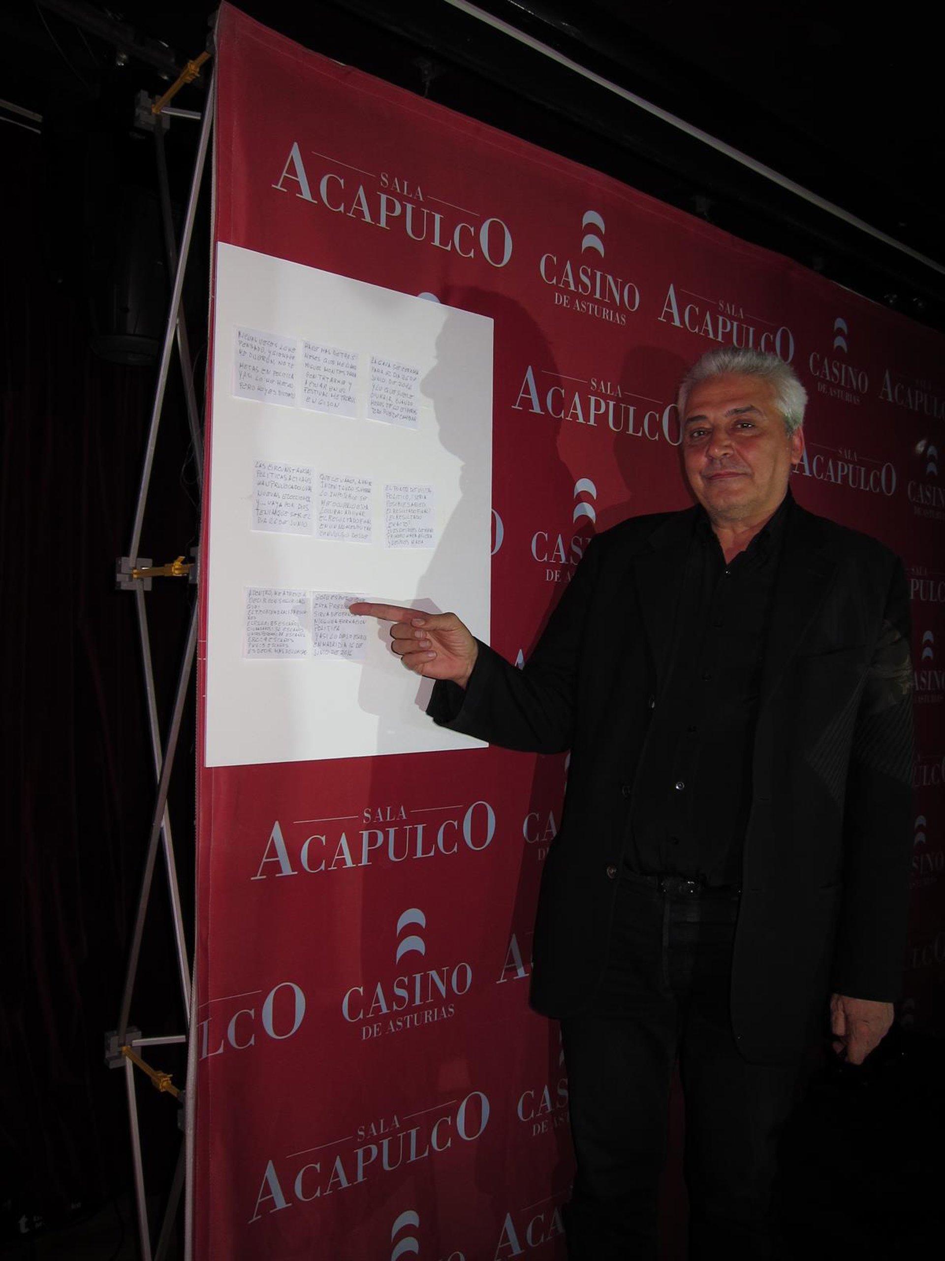 Una vez abierta la urna y el sobre por el periodista, este ha procedido a leer los ocho papeles que contenía, en los que Blake iba a explicando cómo le había surgido la idea de tratar de adivinar los resultados, al coincidir el haber sido contratado para actuar en el festival gijonés Metrópoli el mismo día en el que se convocaron las elecciones generales.