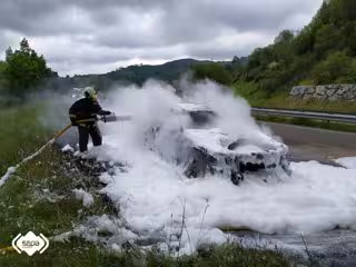 Un vehículo ha resultado calcinado por completo en la autovía AS-I tras un incendio que ha sido sofocado en la carretera por efectivos del Servicio de Emergencias del Principado de Asturias (SEPA).