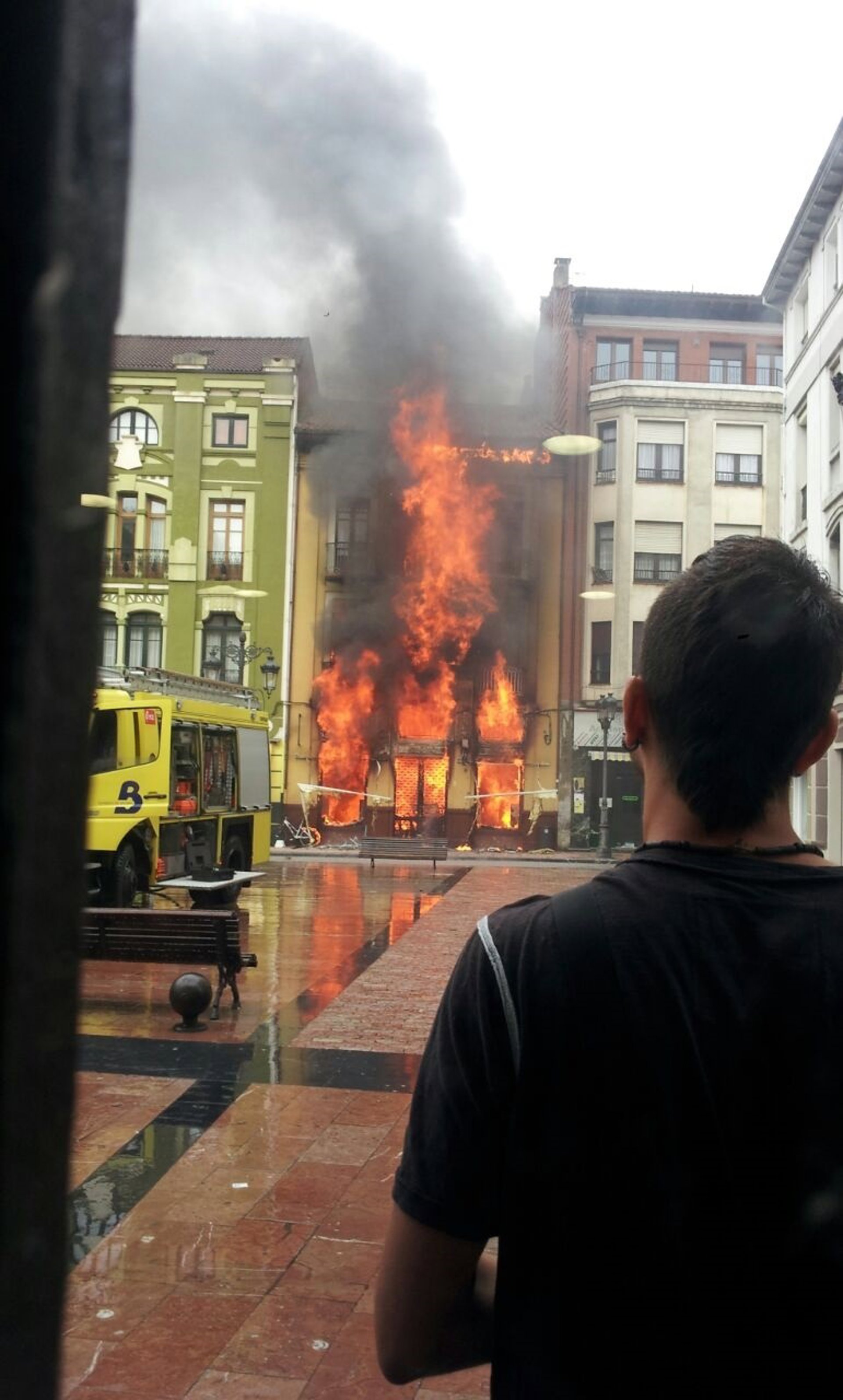 Un espectacular incendio ha afectado esta tarde a un edificio en la localidad asturiana de Ribadesella y los bomberos intentan controlarlo.