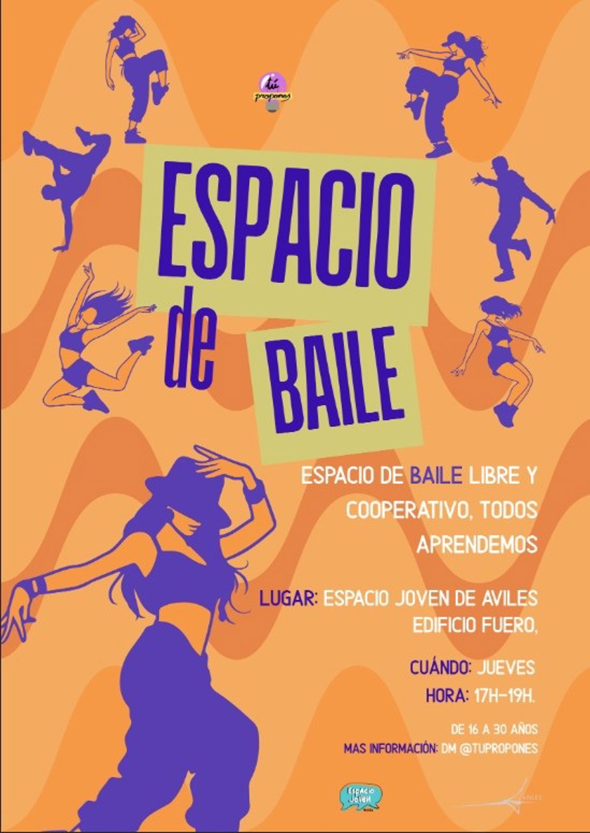El área de Juventud del Ayuntamiento de Avilés ha puesto en marcha un espacio de baile libre, cooperativo y seguro propuesto por jóvenes. Tendrá lugar todos los jueves de 17.00 a 19.00 horas en el Edificio Fuero y está dirigido a jóvenes de entre 16 y 30 años.