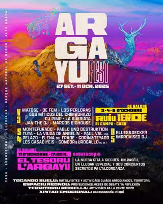 El Argayu Fest celebrará del 27 de septiembre al 11 de octubre su segunda edición, con un programa que se extiende a tres concejos del Parque Natural de Redes: Caso, Laviana y Sobrescobio. El festival, de carácter gratuito, incluirá conciertos, sesiones de DJ, actividades infantiles y propuestas para descubrir el patrimonio cultural, natural y etnográfico de la zona.