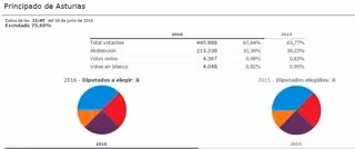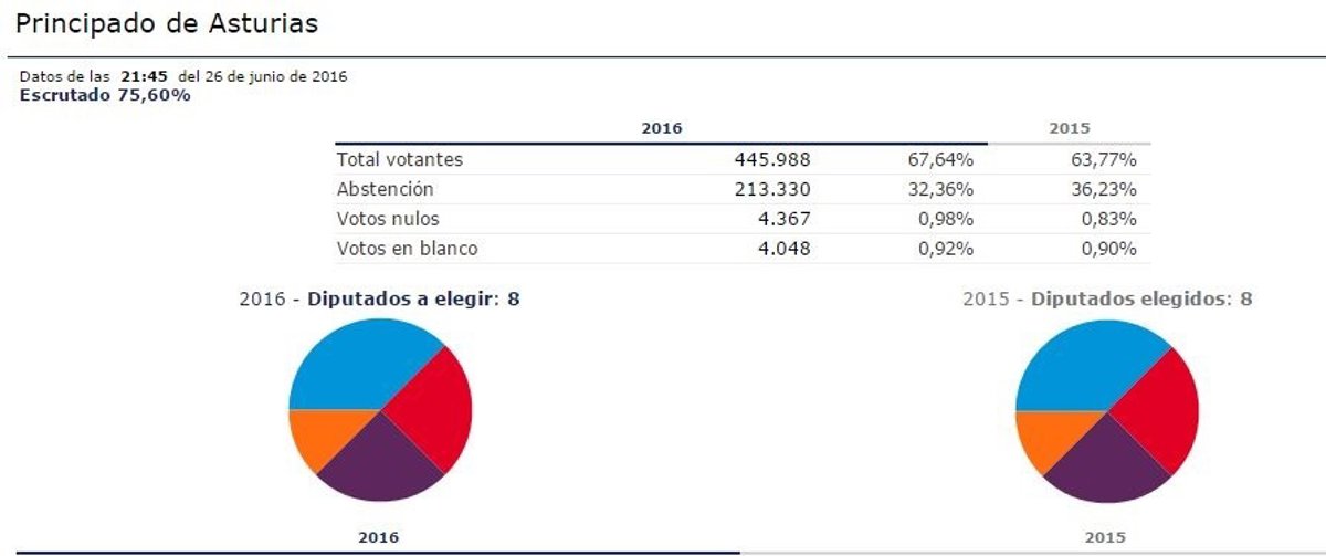 Los resultados en Asturias, con el 75,60 por ciento de los votos escrutados, son los siguientes: