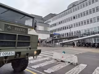 Montaje de un hospital de campaña junto al centro hospitalario de Cabueñes, en Gijón - EUROPA PRESS