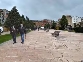 Personas paseando por La Losa de Oviedo en un día de primavera, con mascarillas. - EUROPA PRESS