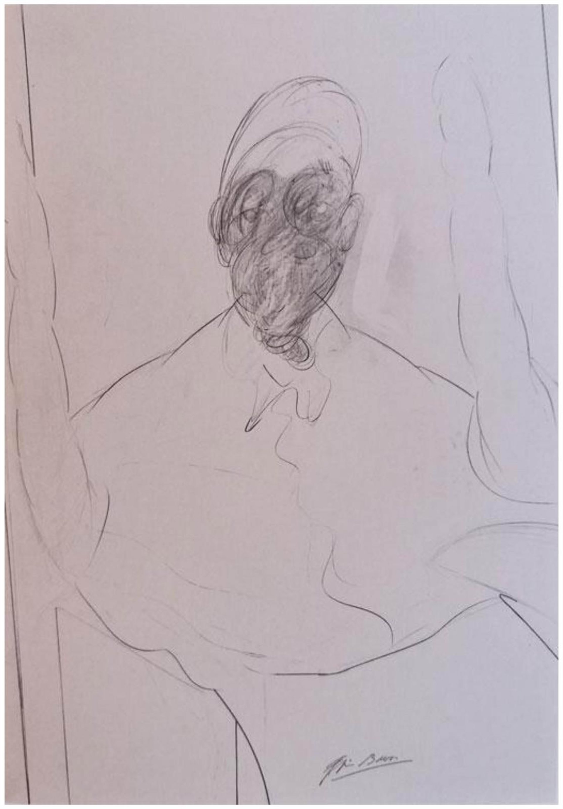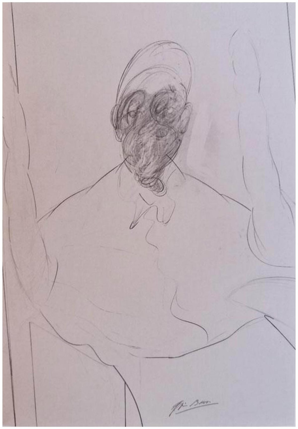 El dibujo, a lápiz, procede de la colección de quien fuera también amigo íntimo del pintor, Cristiano Lovatelli Ravarino, con quien Bacon mantuvo una relación sentimental durante años, y que llegaría a poseer alrededor de 730 diseños atribuidos al pintor.