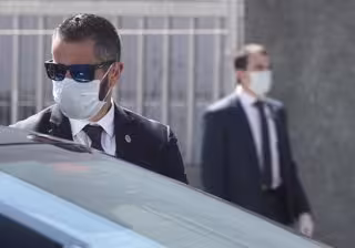 Miembros de seguridad con mascarilla escoltan al presidente del gobierno, Pedro Sánchez. - Eduardo Parra - Europa Press