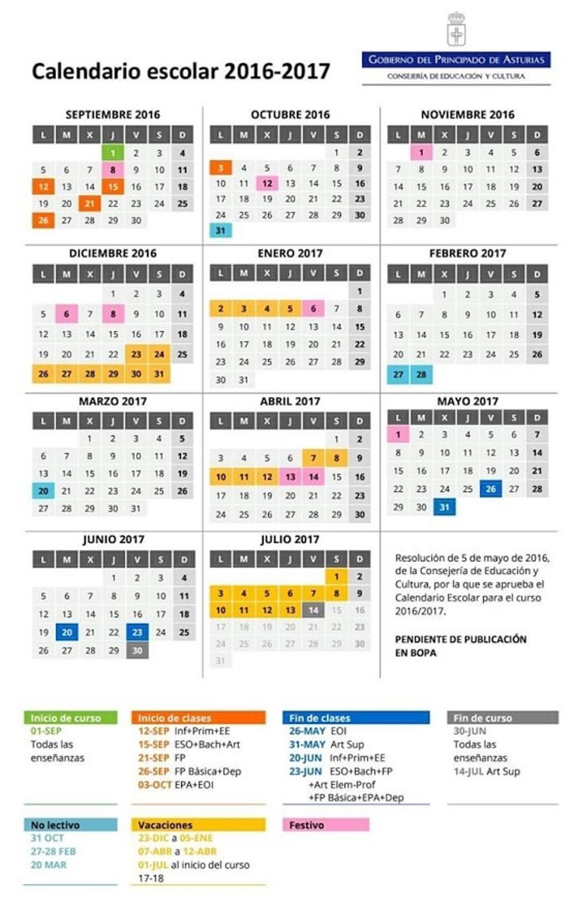 La Consejería de Educación publicó en el BOPA del pasado 1 de junio el calendario escolar del curso 2016-2017 en el que se mantienen los tres habituales periodos vacacionales.