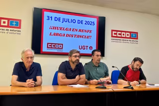 El responsable ferroviario de UGT, Francisco Barros, ha asegurado que los sindicatos llevan "dos años reclamando a la empresa que mantenga las cargas de trabajo históricas de Asturias" y ha advertido de que, si no se refuerza la plantilla, la situación empeorará con las jubilaciones previstas. "Es lamentable tener que llegar a una huelga, pero la empresa no ha dado respuesta a nuestras peticiones", ha señalado.